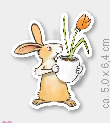Hase mit Tulpe als Formmagnet aus Holz. Illustriert von Imke Sönnichsen, ca. 5,0 cm x 6,4 cm.