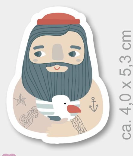 Tätovierter Seemann mit Möwe als Formmagnet aus Holz. Maße ca. 4,0 cm x 5,3 cm.