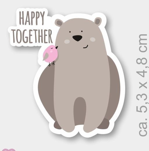 Bär und Vogel "Happy Together" aus Holz. Maße ca. 5,3 cm x 4,8 cm.