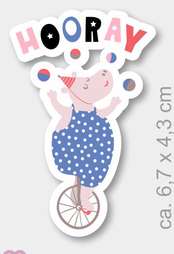 Nilpferd auf Einrad "Hooray" aus Holz. Maße ca. 6,7 cm x 4,3 cm.
