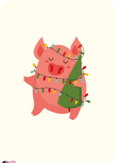 Schwein mit Weihnachtsbaum und Lichterkette