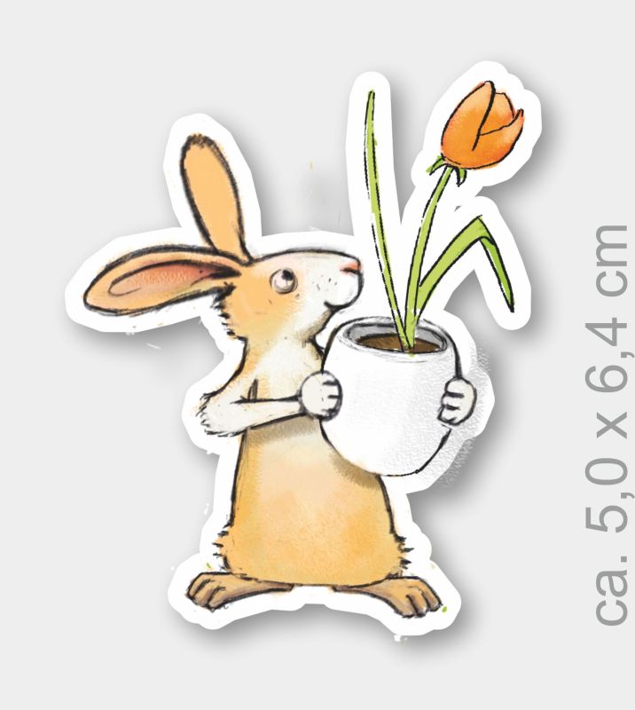 junger Hase trägt übergroße Möhre im Arm