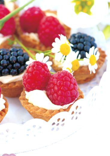 Feines Obstgebäck mit Blumen.