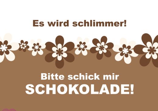 Spruchkarte: "Es wird schlimmer! Bitte schick mir Schokolade"