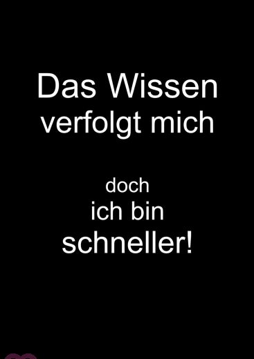 Spruchpostkarte mit dem Text: "Das Wissen verfolgt mich, aber ich bin schneller.".