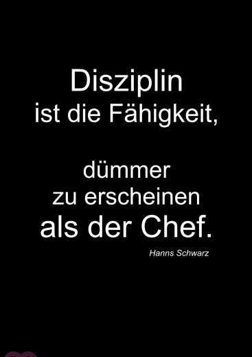 Spruchpostkarte mit dem Text: "Disziplin ist die Fähigkeit, dümmer zu erscheinen als der Chef.".