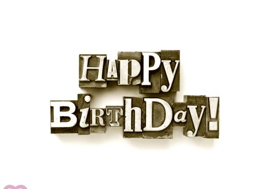 Happy Birthday aus alten Bleilettern unterschiedlichen Typs auf weißem Untergrund.