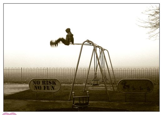 Extremschaukeln - Jugendlicher Adrenalinjunkie schaukelt über 90° hinaus - No Risk, no fun.