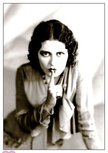 Frau mit gelocktem dunklem Haar ermahnt zur Verschwiegenheit, indem Sie Ihren Finger auf die Lippen legt.