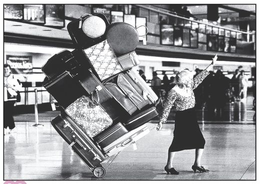 Flughafen, Frau, Frauen, Oma, alte Frau, Kofferträger, Koffer, s/w, quer