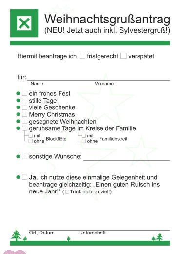 Weihnachtsgrußantrag, Formular zum Ankreuzen zu Weihnachten.