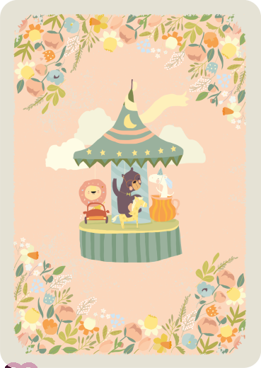 Kinderkarussell mit Löwe, Bär und Pferd - Naturpapier Postkarte abgerundeten Ecken Hochformat DIN A6auf hochwertigem recyceltem Naturpapier gedruckt