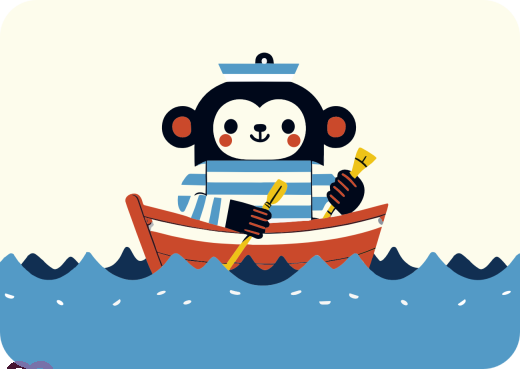 Kleiner Affe mit Matrosenmütze in einem Ruderboot