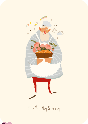 Großvater mit Kuchen für Großmutter