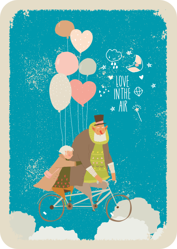 Ehepaar Oma Opa Fahrrad radeln Fliegen Hochzeit Liebe verliebt sein Himmel Wolken Herzen