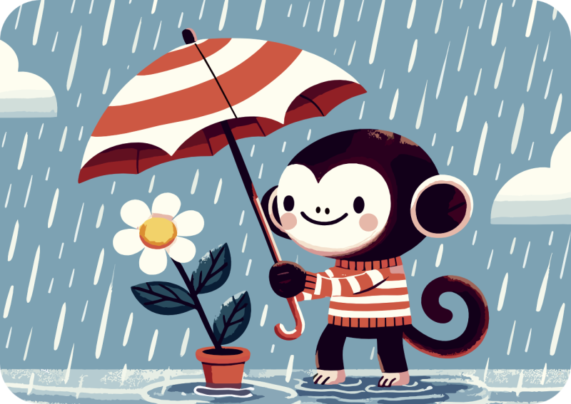 Affe Säugetier Blumen Natur Wetter Regen Regenschauer Wasser Blumentopf Unwetter