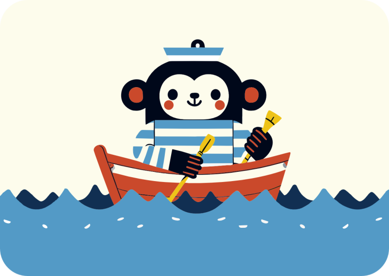Affe Säugetier Boot Wasser Meer See rudern Matrose Schiffsjunge
