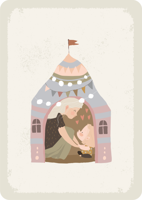 Mutter und Kind sitzen zusammen in einem Zelt