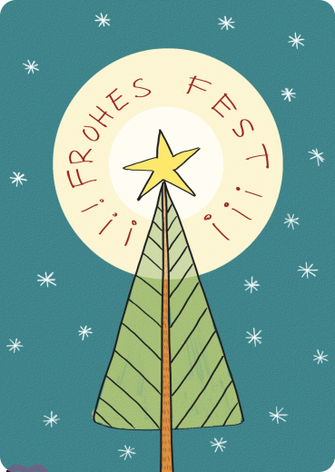 Frohes Fest! Weihnachtsbaum mit leuchtendem Weihnachtsstern. Illustration von Imke Sönnichsen.