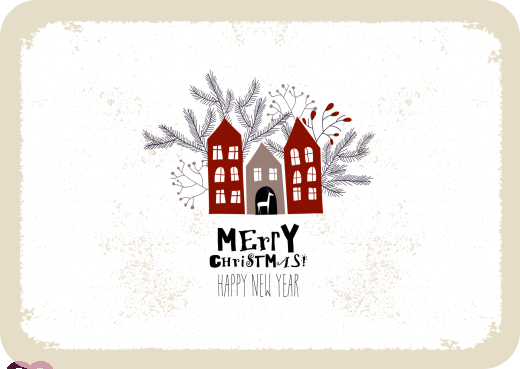 Frohe Weihnachten und ein glückliches Neues Jahr - Häuser, Rentier und Weihnachtszweige