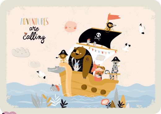 Pirate Ship with Animals - Calling Adventures - Natural Paper Postcard with Rounded Corners Landscape Format DIN A6printed on high quality recycled uncoted paper