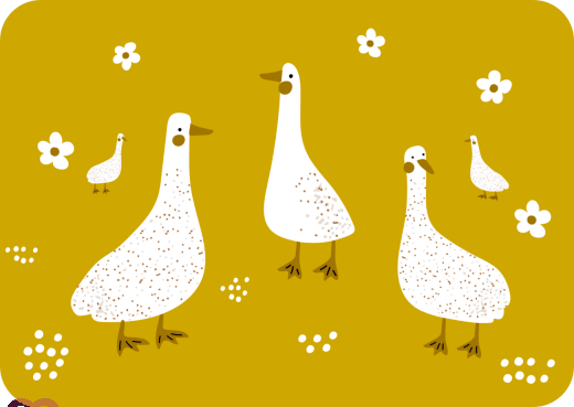 White geese in a field of flowers