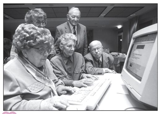 PC, woman, women, man, men old, computer, computer keyboard, learning, internet, surfing, grandmas, grandpas, fitness, b/w, landscape