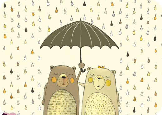 Two bears under an umbrella protect themselves from the rain together. Illustration by Imke Sönnichsen.