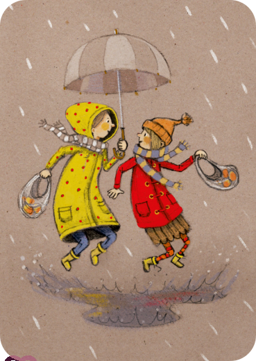 Friends Dancing in the Rain – Illustration by Imke Sönnichsen