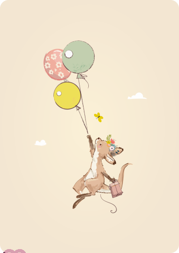 Kangaroo flies with balloons with gift.