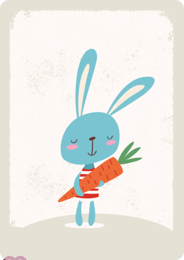 young rabbit with big carrot that reminds of a school bag
