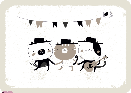 Three cats / tomcat with hat and guitar - natural paper postcard rounded corners landscape format DIN A6printed on high quality recycled uncoted paper