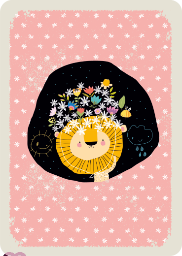 Lion with flowers in his hair - natural paper postcard rounded corners portrait format DIN A6printed on high quality recycled uncoted paper
