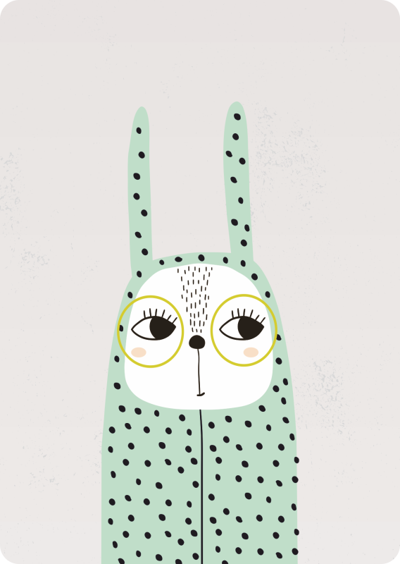 Postcard with rounded edges bunny glasses Zilinder hat braces bunny