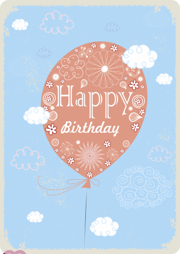 Red balloon with the inscription "Happy Birthday" rises into the sky.