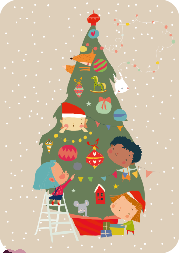 Children decorate a Christmas tree